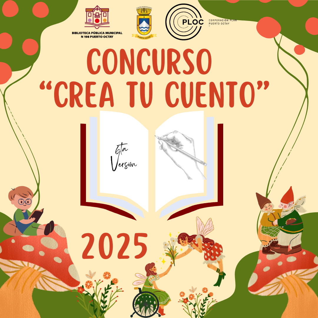 La Ilustre Municipalidad de Pto. Octay a través de su Biblioteca Pública Municipal, servicio Bibliomóvil, en conjunto con Corporación Ploc y entidades patrocinadoras, tienen agrado de invitar a la comunidad a participar del Quinto Concurso Literario Comunal: "Crea tu Cuento", 2025.
